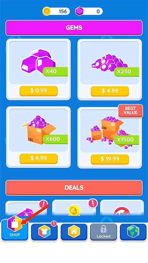 7、回到游戏主界面后,进入【SHOP】界面,就能购买对应的道具和游戏币了。