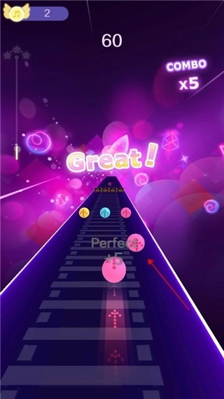 2、正式开始后,通过滑动屏幕操控小球移动,跟着节奏点行动能获得更高分数哦。