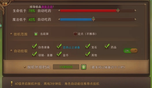 6、野外地图与海量野外怪物是一大特色,还配备了贴心的离线挂机功能,即使不在线,经验值也能持续增长。